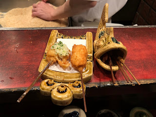 I'll be honest, I didn't know what I ate, it was a kushikatsu set - the most expensive - that cost about 3200 yen per person for 14 pieces